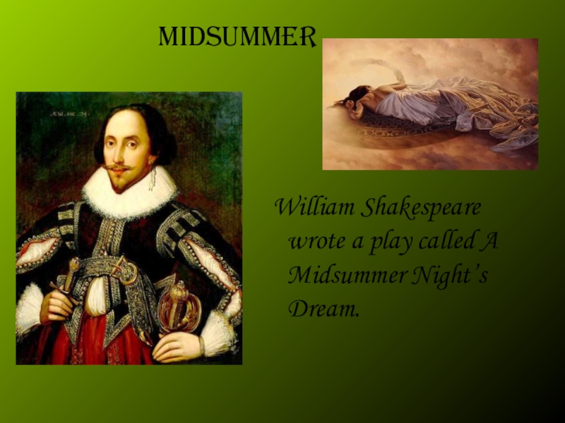 Слайд 13 William Shakespeare wrote a play called A Midsummer Night’s Dream.