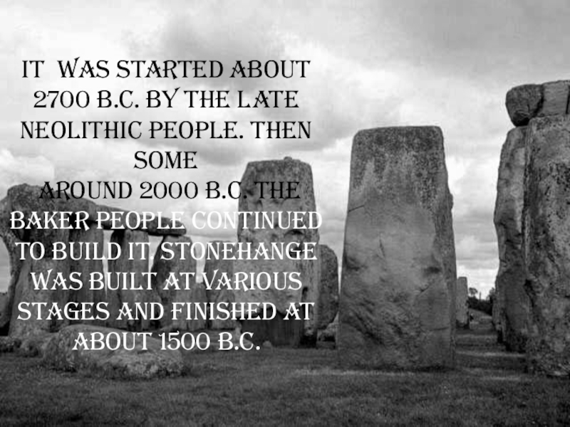 Слайд 5It was started about 2700 B.C. by the late Neolithic people.
