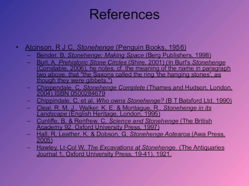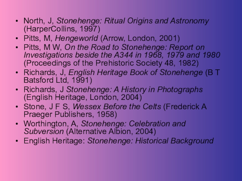 Слайд 19North, J, Stonehenge: Ritual Origins and Astronomy (HarperCollins, 1997)
