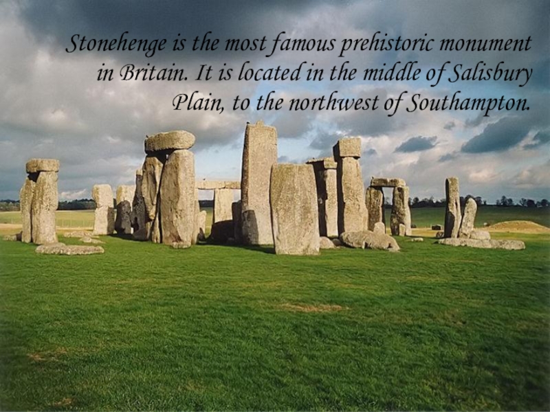 Слайд 2Stonehenge is the most famous prehistoric monument in Britain. It is