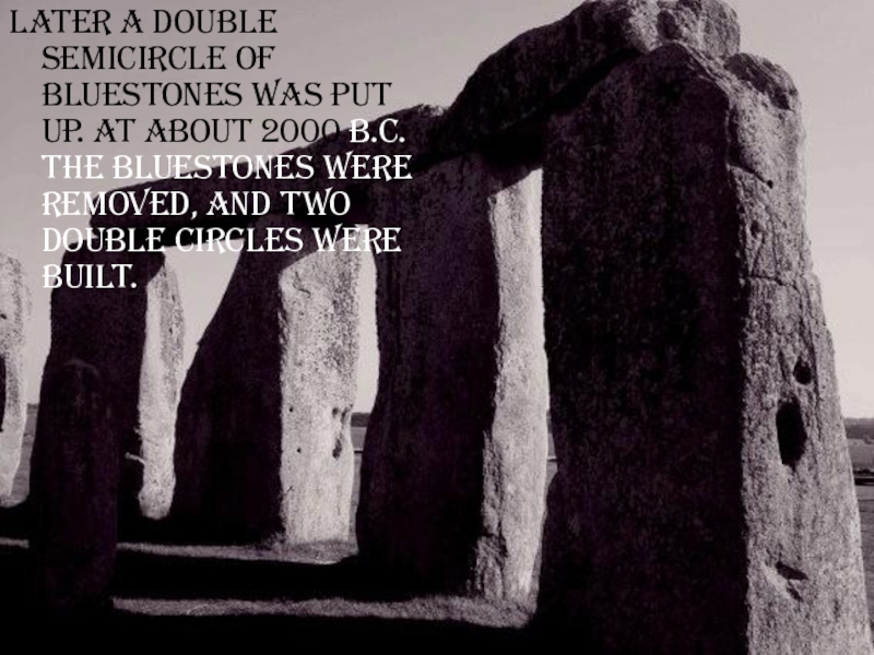 Слайд 6Later a double semicircle of Bluestones was put up. At about