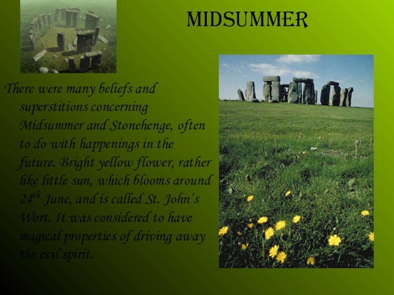 Слайд 11There were many beliefs and superstitions concerning Midsummer and Stonehenge, often