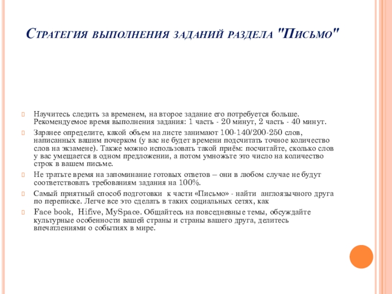 Слайд 8Стратегия выполнения заданий раздела "Письмо"