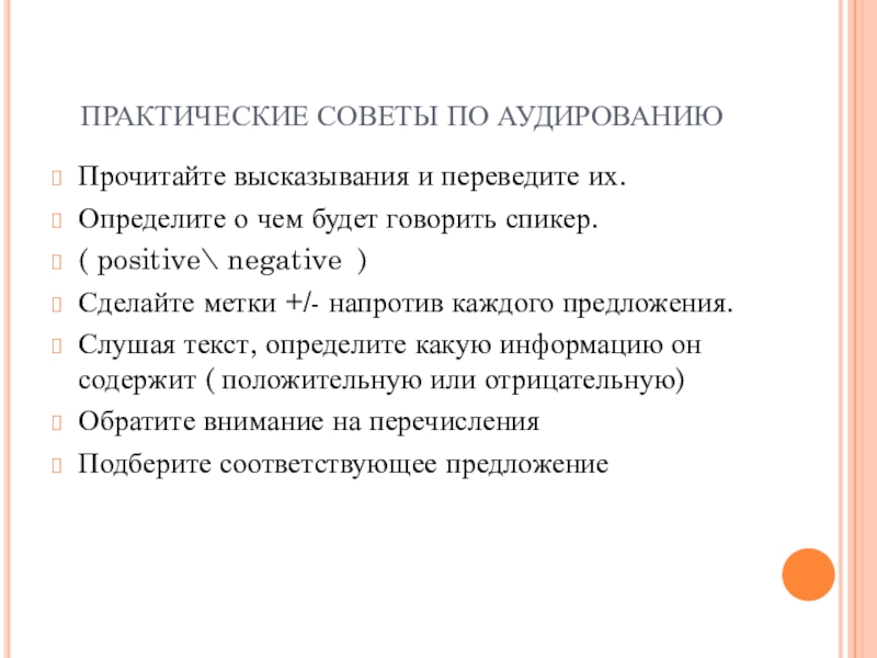 Слайд 4ПРАКТИЧЕСКИЕ СОВЕТЫ ПО АУДИРОВАНИЮ