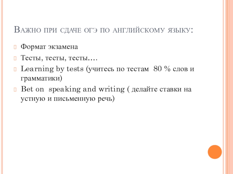 Слайд 2Важно при сдаче огэ по английскому языку: