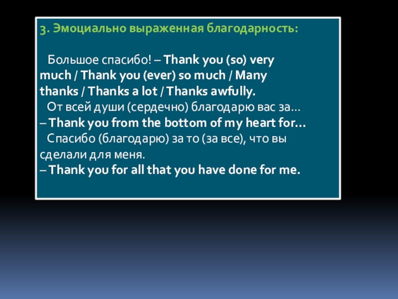 Следует отметить, что grateful является предпочтительным в тех случаях, когда необходимо подчеркнуть значительность оказанной кому-либо услуги, athankful – в контексте, когда нужно подчеркнуть силу испытываемого чувства облегчения от того, что все обошлось