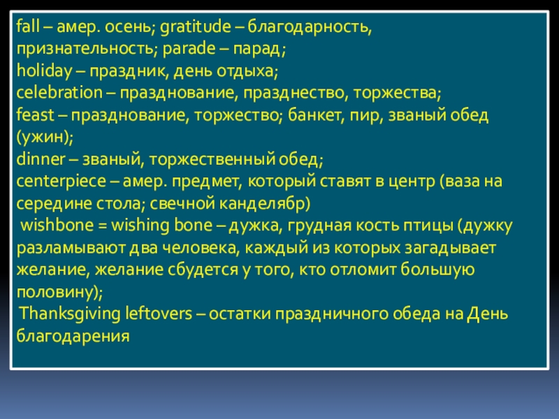 Слайд 4fall – амер. осень; gratitude – благодарность, признательность; parade – парад;