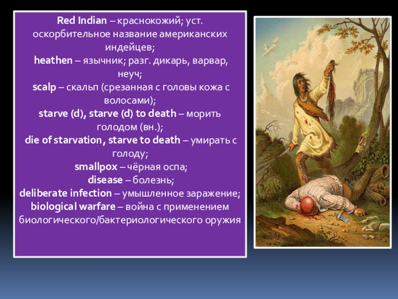 Слайд 27Red Indian – краснокожий; уст. оскорбительное название американских индейцев;