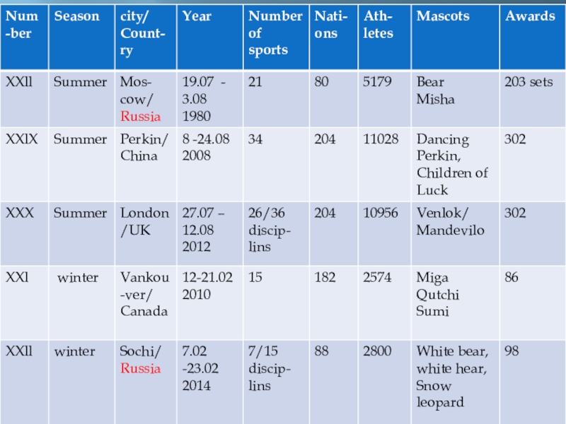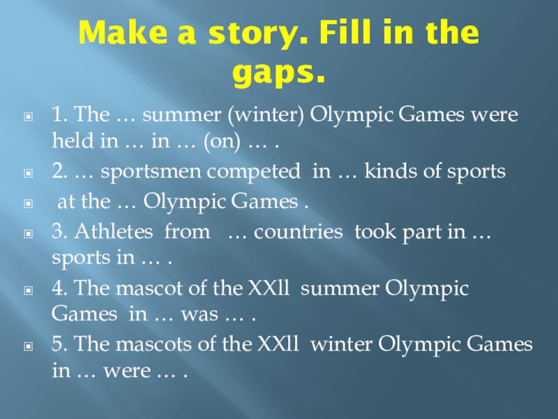 Make a story. Fill in the gaps. 1. The … summer (winter) Olympic Games were held in
