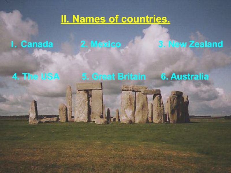 Слайд 4II. Names of countries.
