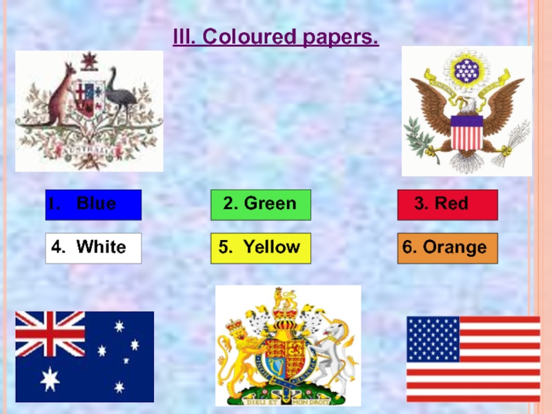 III. Coloured papers.