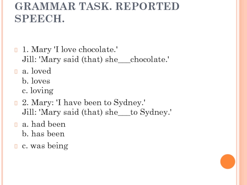 Слайд 16GRAMMAR TASK. REPORTED SPEECH.