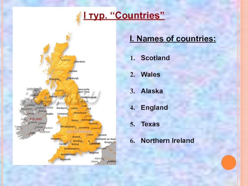 Слайд 3I тур. “Countries”