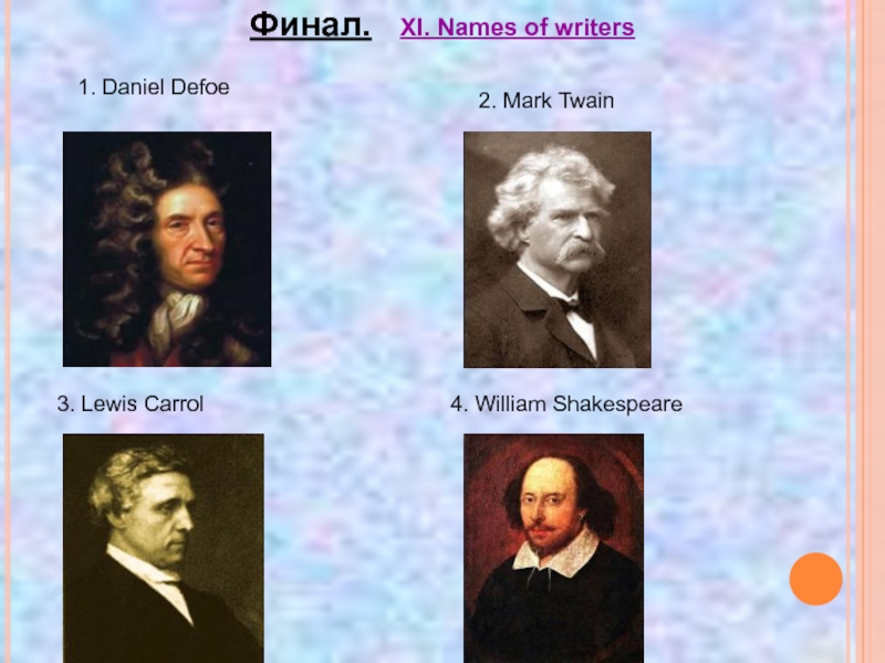 Слайд 20Финал. XI. Names of writers