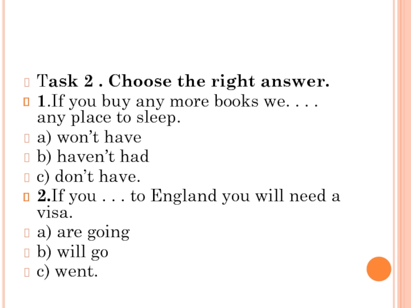 Task 2 . Choose the right answer.