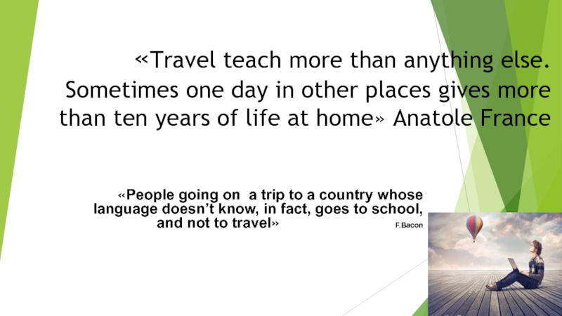 «People going on a trip to a country whose language doesn’t know, in fact, goes to school, and not to travel» F.Bacon
