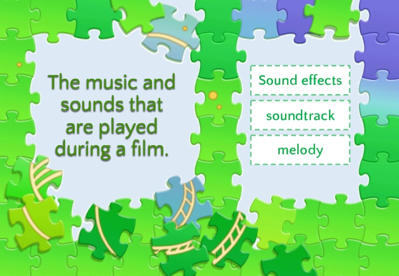 The music and sounds that are played during a film.Sound effectssoundtrack melody