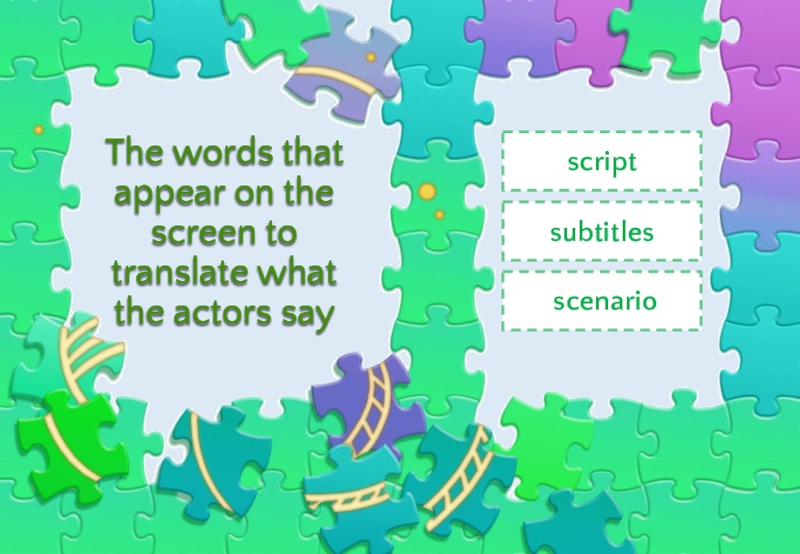 The words that appear on the screen to translate what the actors sayscriptsubtitles scenario