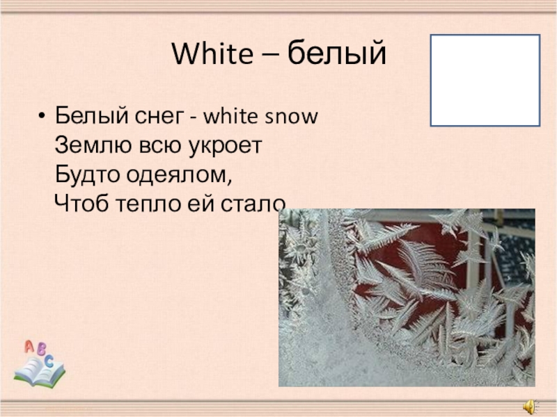 White – белый Белый снег - white snow  Землю всю укроет  Будто одеялом,  Чтоб