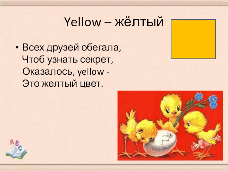 Yellow – жёлтый Всех друзей обегала,  Чтоб узнать секрет,  Оказалось, yellow -  Это желтый