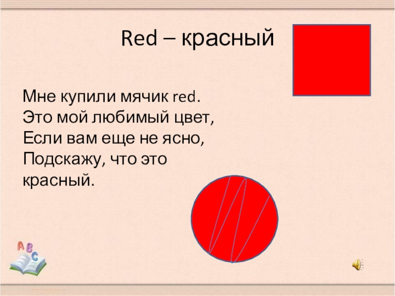 Red – красный Мне купили мячик red.  Это мой любимый цвет,  Если вам еще не