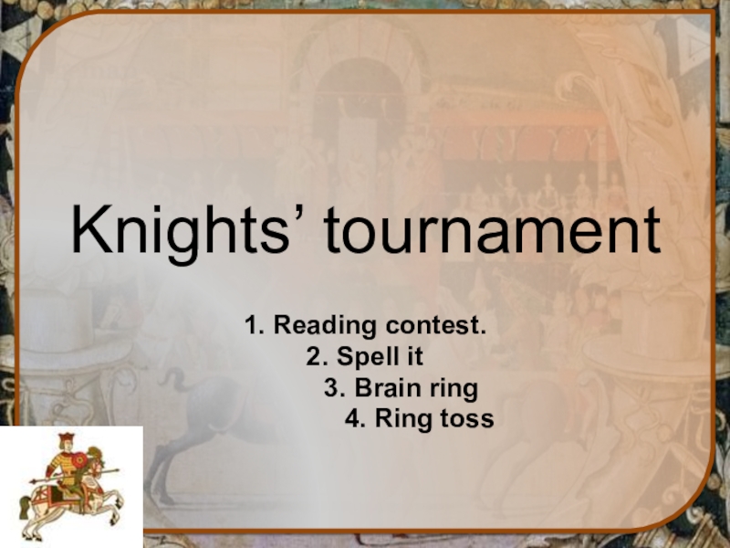 Knights’ tournament1. Reading contest. 2. Spell it		3. Brain ring			4. Ring toss