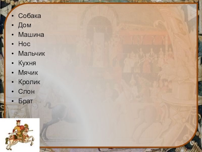 Собака				ДомМашинаНосМальчикКухняМячикКроликСлонБрат