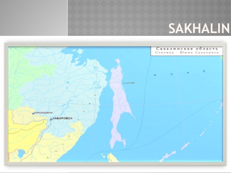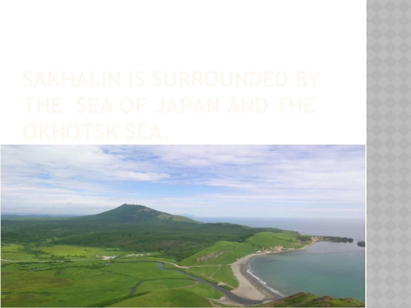 Слайд 4Sakhalin is surrounded by the Sea of ​​Japan and the Okhotsk