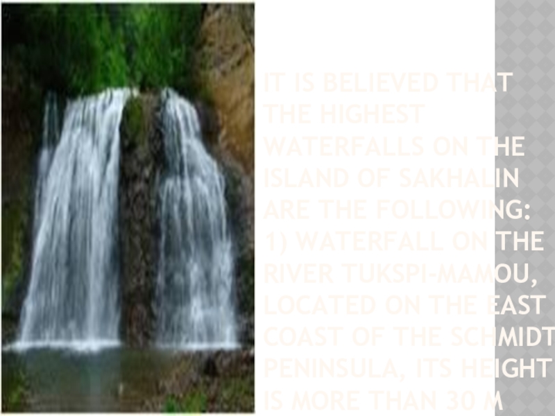 Sakhalin are the following: 1) waterfall on the river Tukspi-Mamou, located on the east coast of the Schmidt Peninsula, its height is more than 30 m