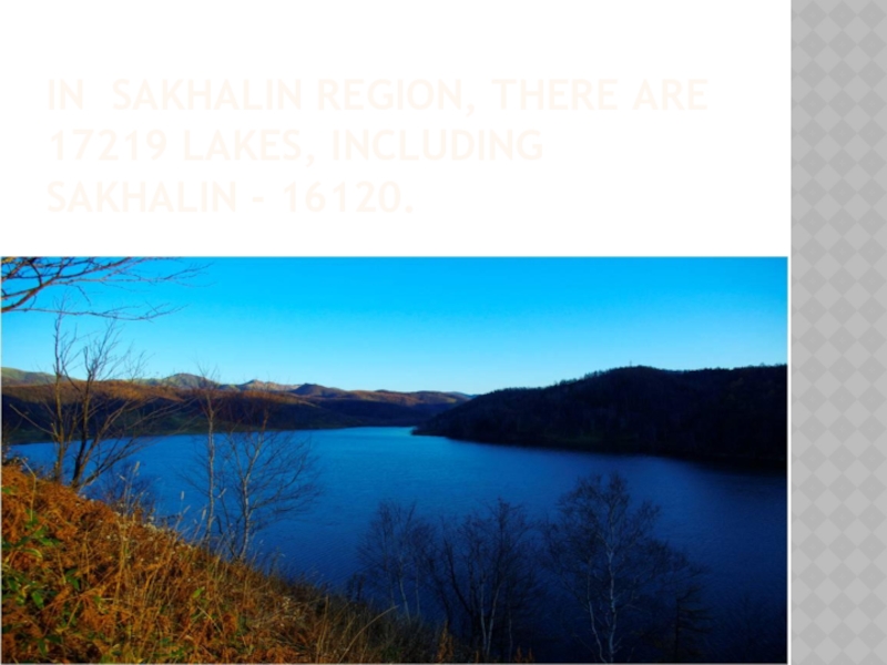 Слайд 5In Sakhalin region, there are 17219 lakes, including Sakhalin - 16120.