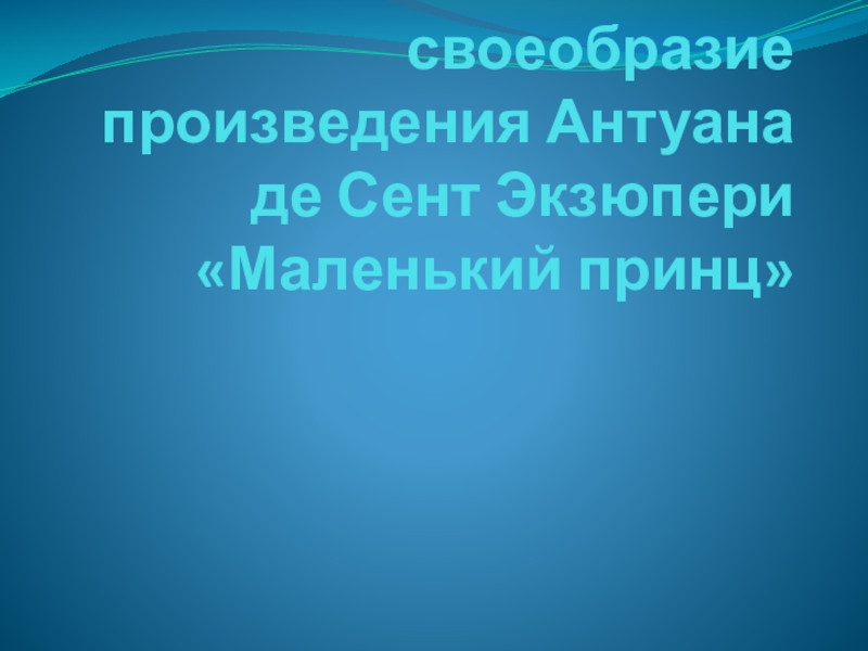 Слайд 1Стилистическое своеобразие произведения Антуана де Сент Экзюпери «Маленький принц»