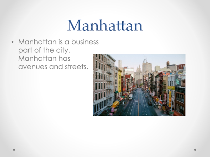 ManhattanManhattan is a business part of the city. Manhattan has avenues and streets.