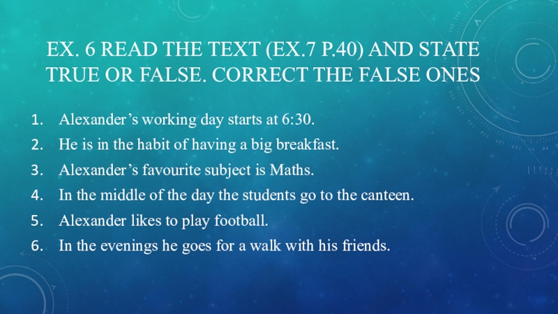 Alexander’s working day starts at 6:30.