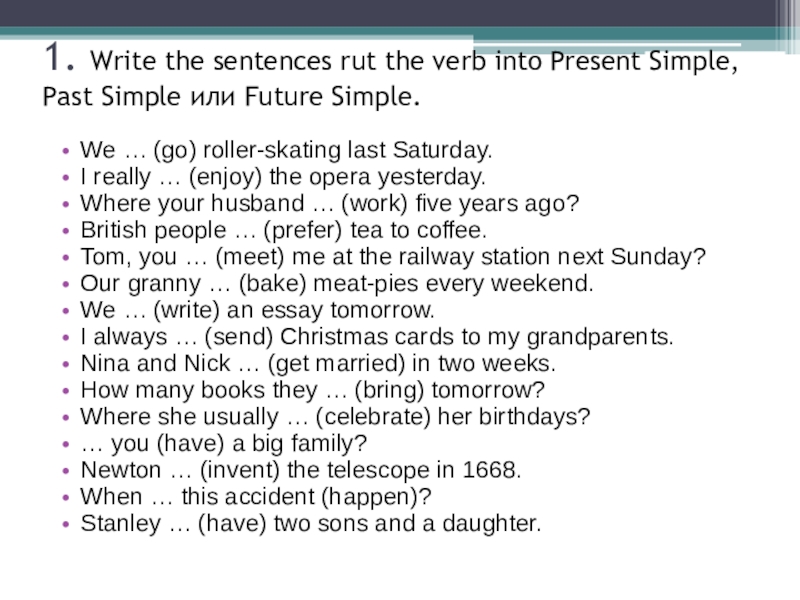 We … (go) roller-skating last Saturday.