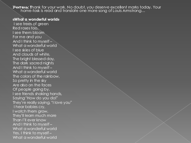 today. Your home-task is read and translate one more song of Louis Armstrong…