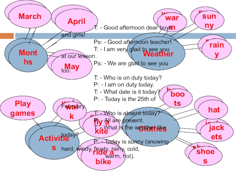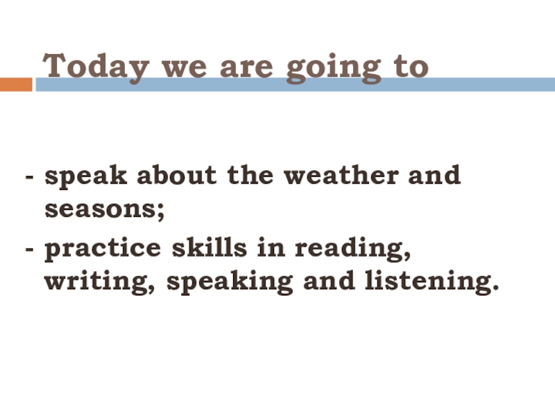 P: - Today is sunny (snowing hard, windy, frosty, rainy, cold,