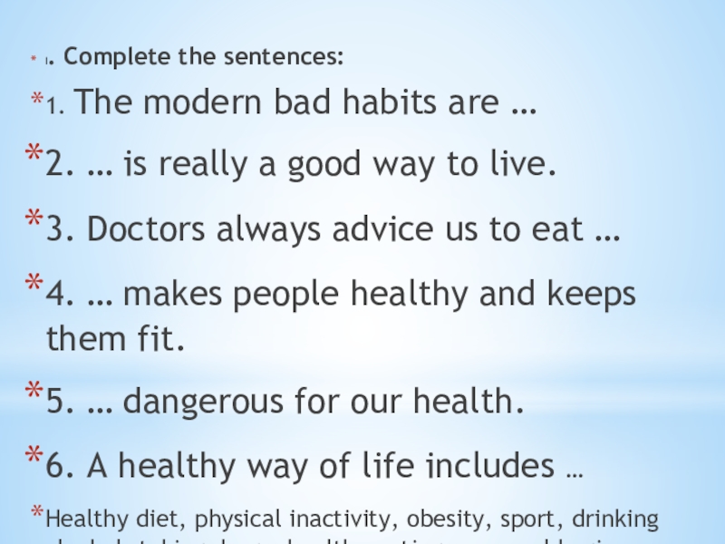 II. Write down. Some tips about healthy eating.