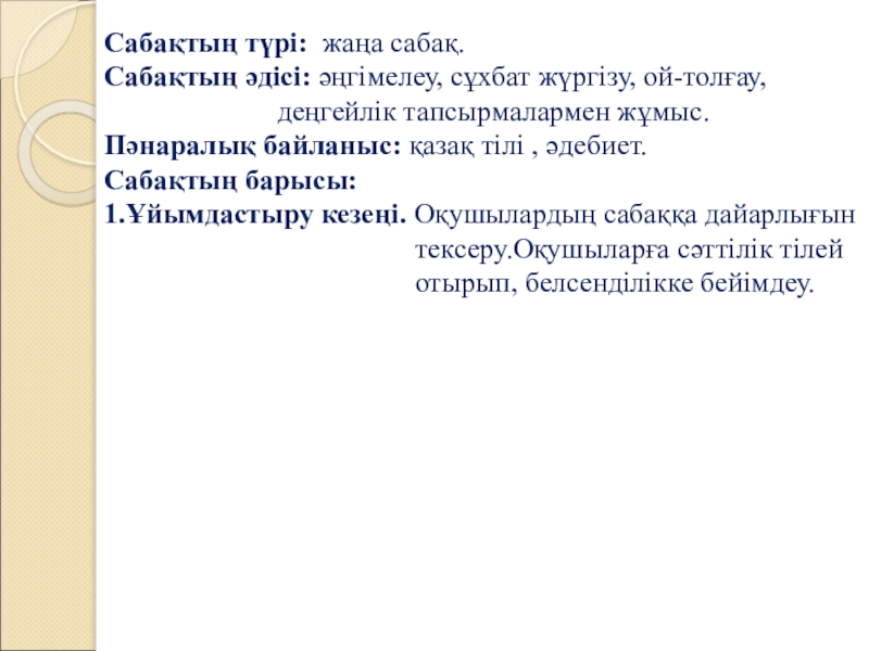 Сабақтың тақырыбы: