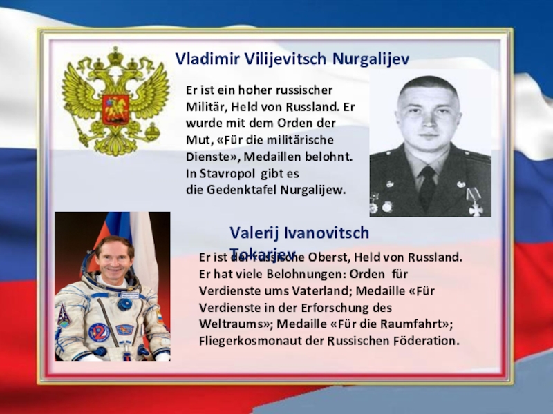 Er ist der russische Oberst, Held von Russland. Er hat viele Belohnungen: Orden für Verdienste ums Vaterland; Medaille «Für Verdienste in der Erforschung des Weltraums»; Medaille «Für die Raumfahrt»; Fliegerkosmonaut der Russischen Föderation.