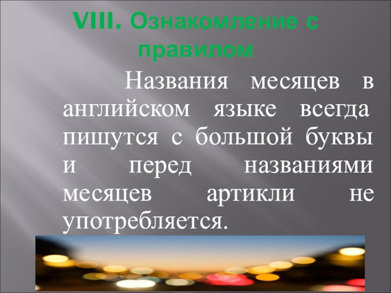 1) Ознакомить учащихся с новой лексикой по теме названиями месяцев.