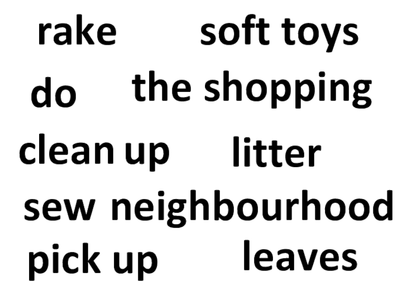 rakeleavessewsoft toysclean upneighbourhooddothe shoppingpick uplitter