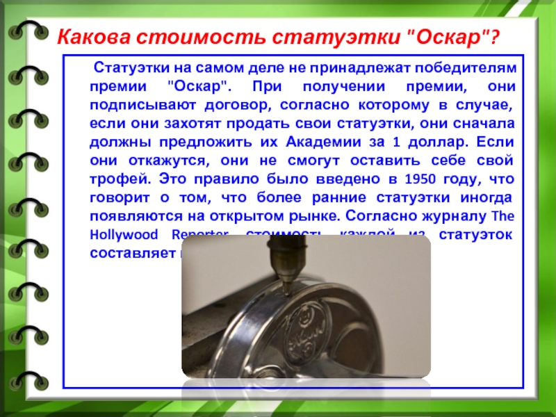 Слайд 12Какова стоимость статуэтки "Оскар"?