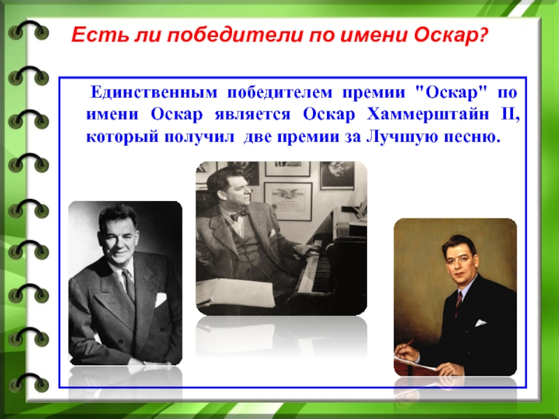 по имени Оскар является Оскар Хаммерштайн II, который получил две премии за Лучшую песню.