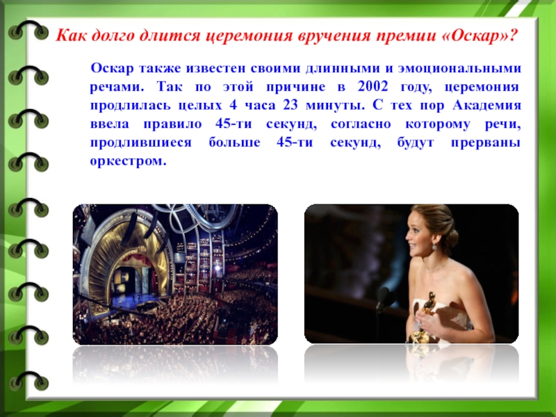 Слайд 18Как долго длится церемония вручения премии «Оскар»?