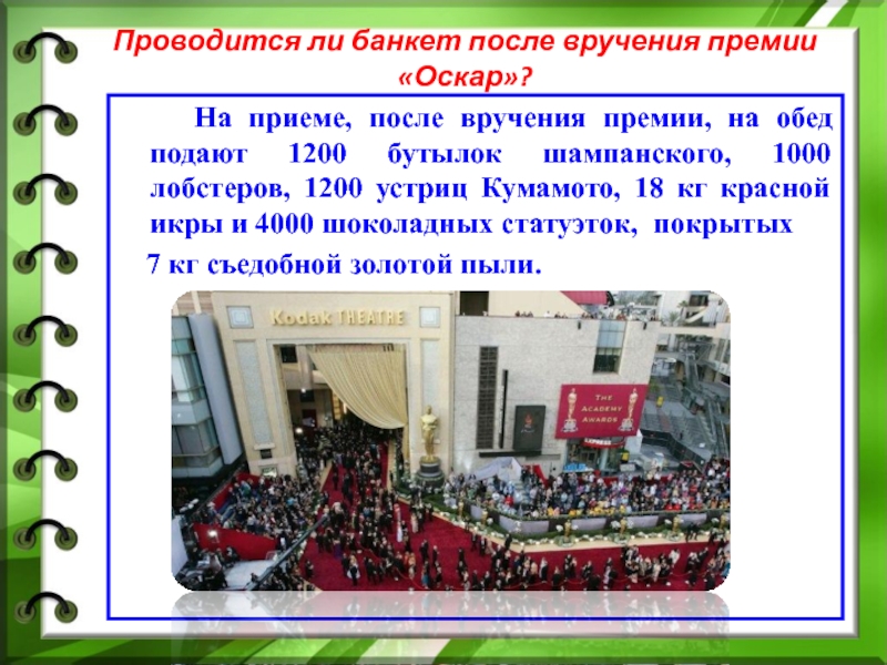 Слайд 15Проводится ли банкет после вручения премии «Оскар»?