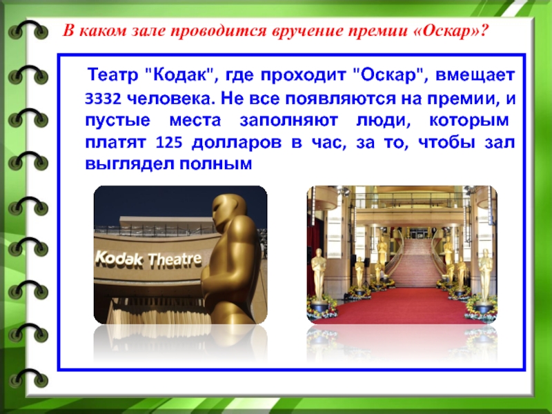 Слайд 17В каком зале проводится вручение премии «Оскар»?