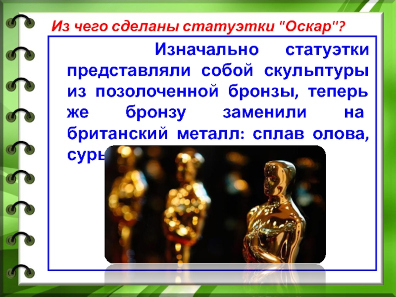Слайд 9Из чего сделаны статуэтки "Оскар"?