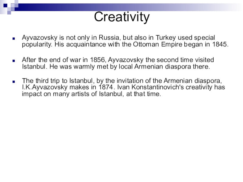 Creativity Ayvazovsky is not only in Russia, but also in Turkey used special popularity. His acquaintance with