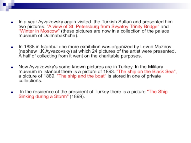 Слайд 4In a year Ayvazovsky again visited the Turkish Sultan and presented
