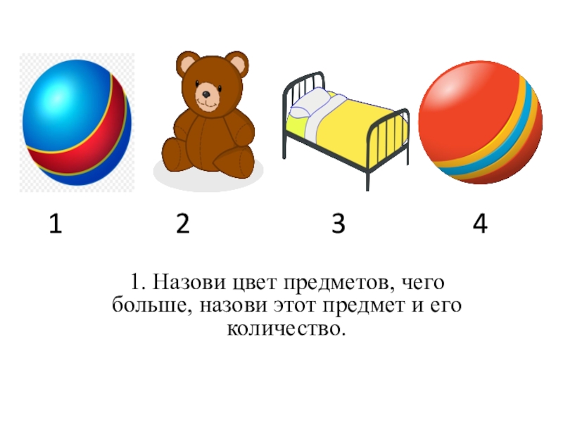 1. Назови цвет предметов, чего больше, назови этот предмет и его количество.
